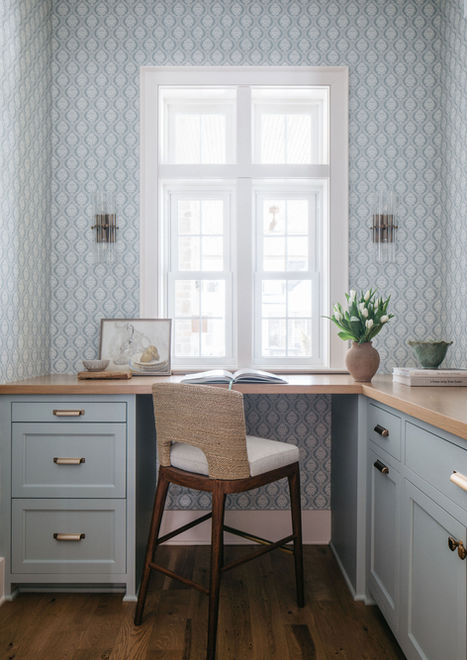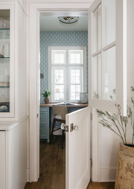 Soft architectural arches add flow and character throughout, while thoughtfully selected wallpaper introduces subtle pattern and depth. Layered textures, a light palette, and comfortable furnishings create a refined yet approachable aesthetic.
